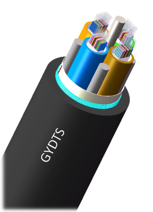 Cấu trúc của cáp quang là chèn băng sợi quang đơn chế độ hoặc đa chế độ vào một ống lỏng làm bằng nhựa mô-đun cao chứa hợp chất chống nước.Trung tâm của lõi cáp là một phần tăng cường kim loạiĐối với một số cáp quang với số lõi nhất định, một lớp đệm polyethylene được ép ra bên ngoài phần tăng cường trung tâm kim loại.Các ống lỏng (và sợi dây bồi đắp) được xoắn xung quanh các thành phần tăng cường trung tâm để tạo thành một lõi cáp nhỏ gọn và trònCác khoảng trống bên trong lõi cáp được lấp đầy bằng hợp chất ngăn chặn nước, và sau đó một vỏ thép-polyethylene liên kết được ép ra để tạo thành cáp.