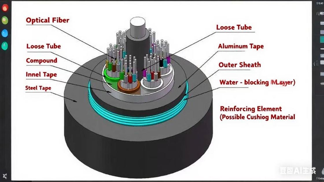 Cấu trúc cáp bao gồm các sợi quang đơn chế độ hoặc đa chế độ được đặt trong một lớp vỏ bên ngoài xoắn chống nước chứa nhựa có mô-đun cao.Đối với một số lượng lõi nhất định, một lớp vỏ bên trong liên kết nhôm-polyethylene được ép ra trên lớp tăng cường trung tâm.với các hợp chất chặn nước lấp đầy các khoảng trống bên trongCáp sau đó được bọc bằng vỏ bên trong liên kết nhôm-polyethylene, được củng cố bằng sợi thép và được niêm phong bằng vỏ bên ngoài polyethylene.